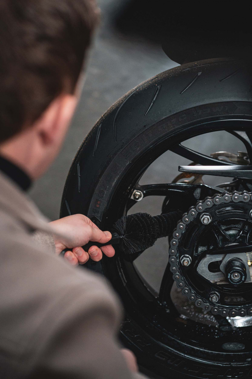 După o plimbare aventuroasă, atât motorul, cât și costumul și casca merită o spălare. Cu ajutorul acestui kit, vei putea să le cureți pe toate! Soluțiile de curățare pentru motocicletă, pentru jante și lanț, pentru cască și costum, bureții și periile de curățare, ceara rapidă și lavetele pe care le vei găsi în acest kit te vor ajuta să te pregătești imediat de o nouă cursă!