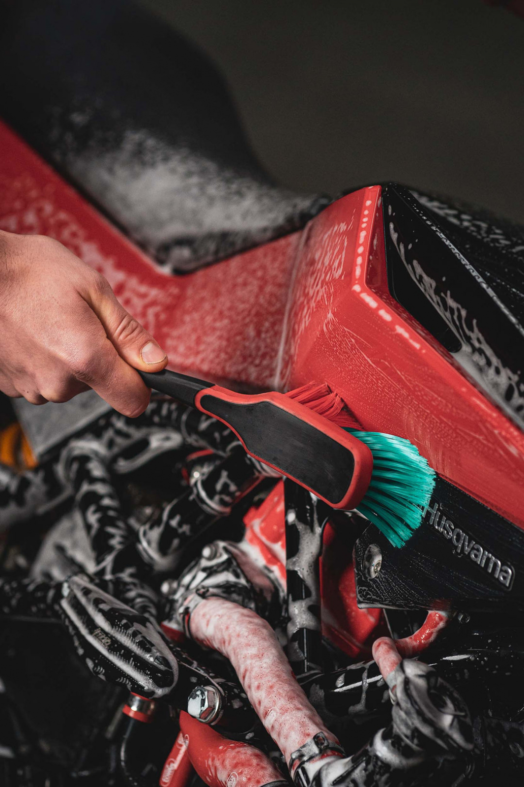 Vei găsi laolaltă toate produsele de care ai nevoie, fără nicio bătaie de cap! Te temi că produsele de curățare vor deteriora vopseaua? În acest kit vei găsi numai produse de cea mai bună calitate! Soluțiile noastre de curățare sunt adecvate pentru oricare componentă a motocicletei tale, fiind compuse din ingrediente biodegradabile. Utilizând acest kit, costul unei spălări va fi de doar 1,19 euro (de până în 6 lei)!