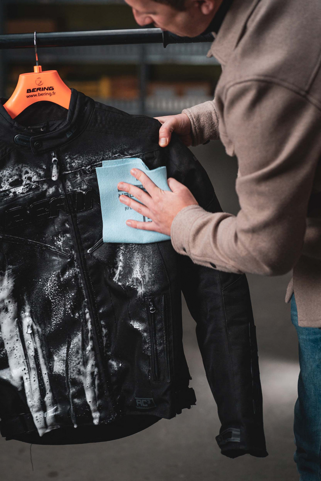 Primul pas este să îndepărtezi murdăria anevoioasă de pe motorul tău. Pentru asta îți vor fi de folos soluția pentru curățarea motocicletei și soluția pentru curățarea lanțului. Apoi murdăria va fi îndepărtată cu ajutorul buretelui din vâscoză, al periei și buretelui pentru curățarea jantelor și al  periei pentru curățarea motocicletei. După clătire, lasă laveta P.U. să-și facă treaba! Rezervorul, parbrizul, componentele din plastic, aluminiu, oțel, precum și componentele vopsite sau lăcuite ale motocicletei vor străluci, fără nicio urmă!